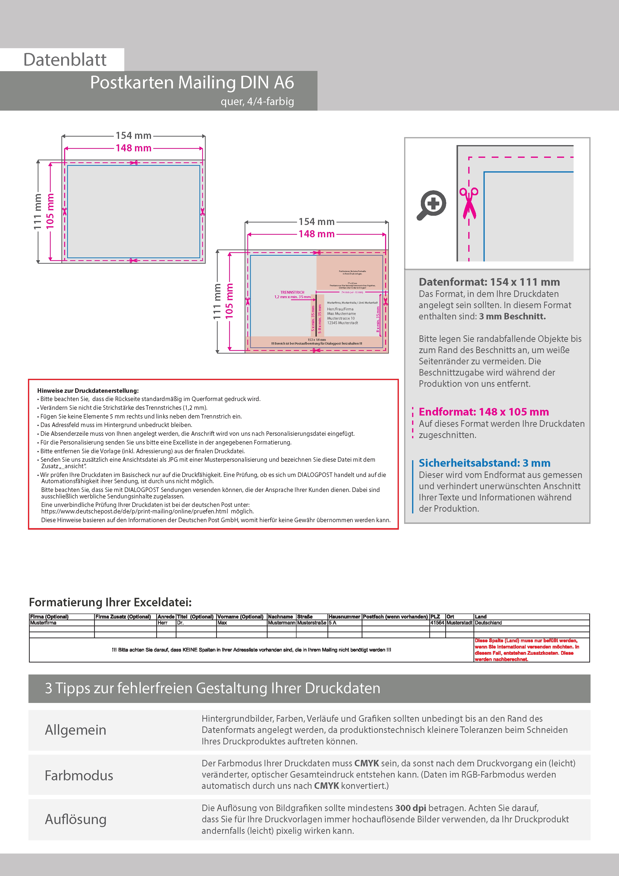 Postkarten-Mailing DIN A6 Quer (14,8 cm x 10,5 cm)