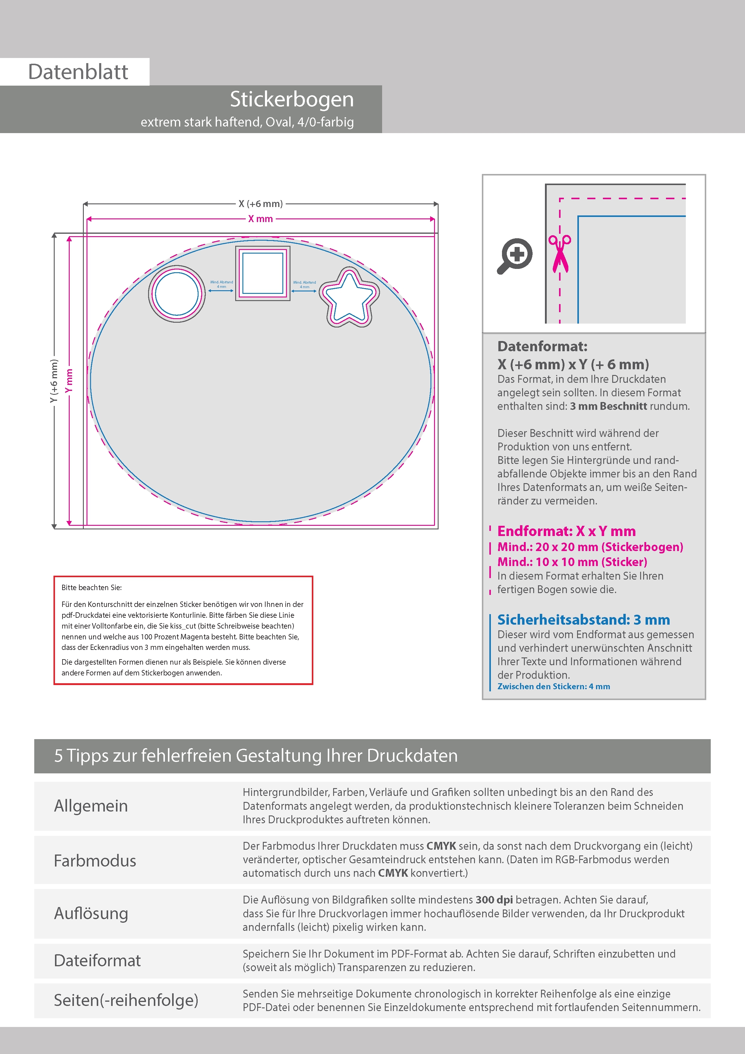 Stickerbogen extrem stark haftend 4/0 farbig bedruckt oval (oval konturgeschnitten)