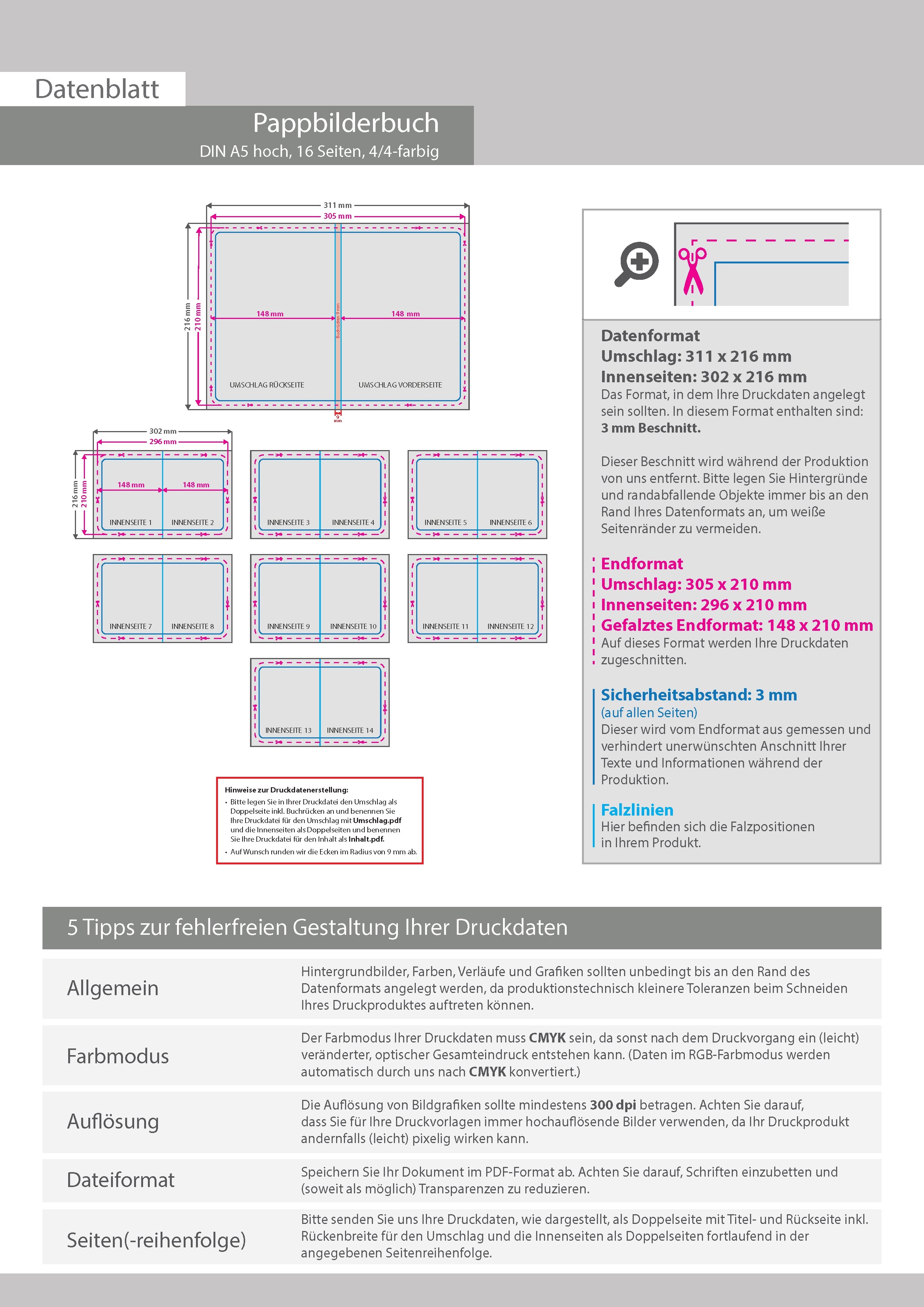 Pappbilderbuch mit Lay-Flat-Bindung, DIN A5 hoch, 16 Seiten, 4/4-farbig beidseitig bedruckt